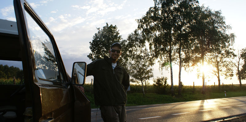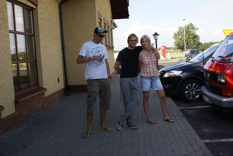 Przygoda się zaczęła całkiem zwyczajnie. Wyruszyliśmy z Wawy koło godziny 10 i tak wskoczyliśmy na naszą jedną z licznych autostrad ( i tu śmiech ) w kierunku Poznania. Nie śpiesząc się, bo i tak nasze strzały nam na to nie pozwalają, więc spokojnie turlaliśmy się po zakorkowanych naszych polskich drogach. Gdy już udało nam się wyskoczyć z korków i pojechać nieco szybciej, pojawiła się pierwsza niespodzianka. Zza krzaka wyskoczyła Pani policjantka z lizakiem, a że Kuba z Karo są Węstką prowadzącą, padło na nich. Pani poleciła Kubie założenie butów i wysiadkę z samochodu bo okazało się, że jego Malina przekroczyła dozwoloną prędkość.