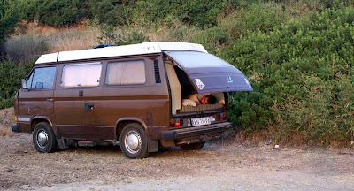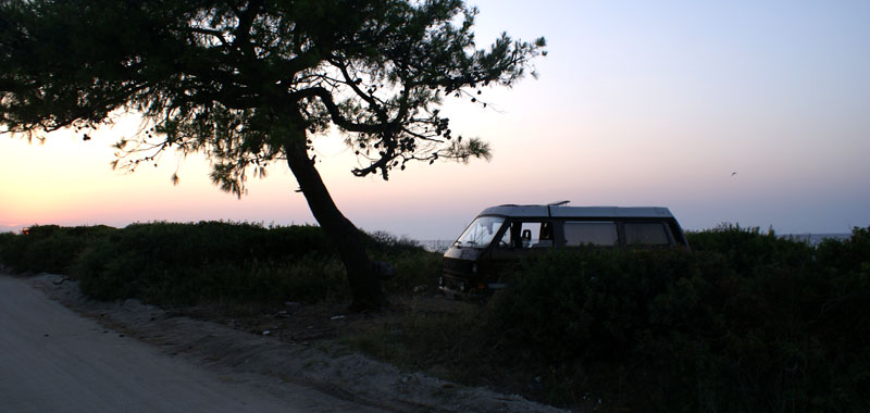 Przejechalismy dalej cala Sithonie, czyli srodkowy paluch polwyspu i skierowalismy sie na Kassandre, czyli pierwszy paluch. Po drodze kapiele itd itp. Miasteczka Kassandry zostaly spalone i rodowitych grekow tam niewiele. Stoja za to wypasione wille z widokiem na morze. Szukanie noclegu to byl niezly wyczyn. Podjechalismy na camping w Kallandra (polodniowa czesc cypla), ale ceny mieli zaporowe, wiec zrezygnowalismy z tego luksusu i zaczelismy szukac ustronnego, darmowego miejsca. Przejechalismy juz prawie caly cypel zmeczeni jak cholera, az w koncu niedaleko Chaniotis przyuwazylismy campery na plazy – yuuuuupi! Tam zostalismy. Przyczailismy sie za drzewkiem, zjedlismy obiadek z tureckiej cebuli i ziemniakow, bulgarskich pomidorow i greckiego miesiwka i poszlismy spac.