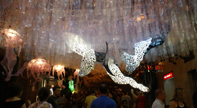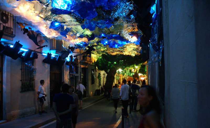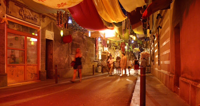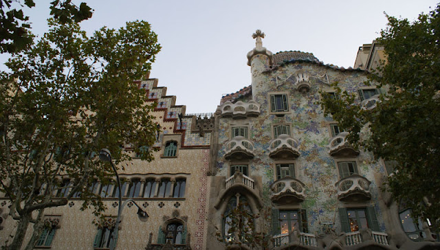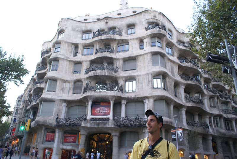 Zrobiło się trochę późno, więc zdążyliśmy tylko obejrzeć Sagrada Familia (dźwigi i rusztowania, ale robi wrażenie). Potem metrem dotarliśmy do kamienic zaprojektowanych przez Gaudiego, następnie Casa Mila, ale niestety nie weszliśmy na tarasy, bo już bylo za późno, więc zdecydowaliśmy się na zwiedzenie bardzo urokliwej, chyba jednej z najbardziej malowniczych dzielnic Barcelony GRACIA. Akurat trafiliśmy na Fiestę (Fiestas de Gracia). W drugiej połowie sierpnia ulice tej dzielnicy ożywają za sprawą mieszkańców i konkursu tam organizowanego na najlepiej przyozdobioną uliczke. Liczne ozdoby wykonane przez lokatorów mniej lub bardziej pomysłowe robią wrażenie.