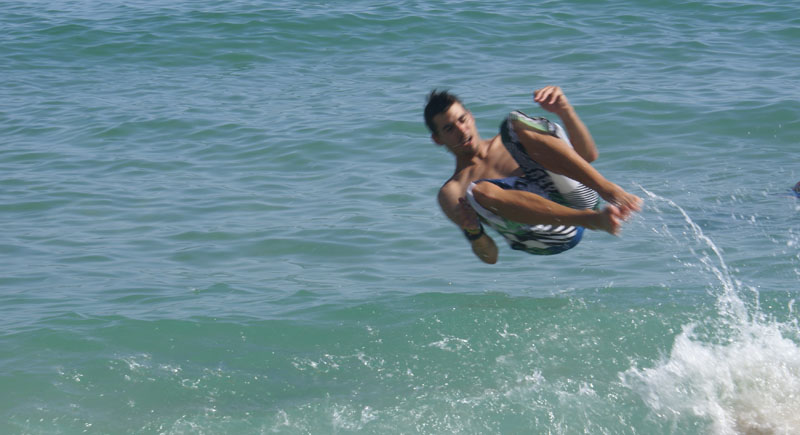 Obudziliśmy się wreszcie bardzo wypoczęci i dalej w drogę. Szybko skontaktowaliśmy się z Kubą i Karo gdzie są, bo chcieliśmy ich dogonić. Skierowaliśmy się w stronę Barcelony jeszcze niepewni nowego serca Westy, ale częste przystanki, wietrzenie silnika spowodowały, że dotarliśmy w okolice Barcelony bardzo szybko. Miasteczko w którym się zatrzymaliśmy nosi nazwę El Masnou i gdy tylko wjechaliśmy przywiodło mi na myśl, że to chyba San Fransisco – strome, pnące się w górę i w dół uliczki. Stanęliśmy na jednej z nich ( Carrer de Italia) i poszliśmy na playe, żeby odpocząć i poczekać na Maliniaka. Na plaży sporo ludzi, ale woda wreszcie taka jaką lubimy – błękitny lazur :). Parę skoków do wody + kąpiel słoneczna i jazda do miasta.