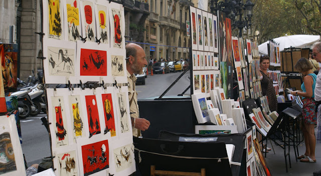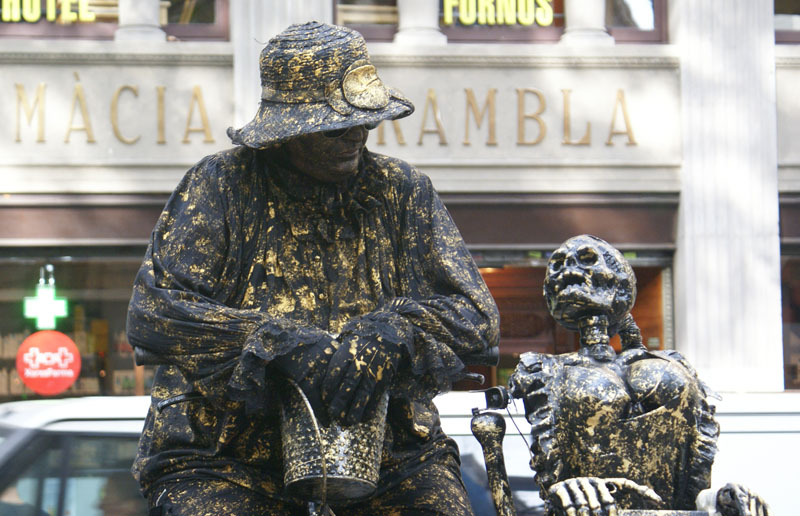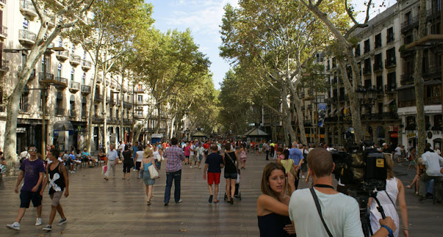Następnie obowiązkowo zwiedziliśmy Park Guel, ale najdłuższa ławka też takiego wielkiego wrażenia na nas nie zrobiła :), ale zobaczyć trzeba. Kolejny kierunek to Las Ramblas, która jest naprawdę sercem miasta i prawdziwym skupiskiem turystów, chociaż trzeba przyznać, że też niezłym centrum obserwacji ludzkich zachowań i zwyczajów. Cały bulwar ma około 1km i na całej jego długości coś się dzieje. Pełno na nim ludzkich rzeźb, „artystów malarzy” i handlarzy. Warto wspomnieć, że Barcelona jest znakomicie dopieszczona komunikacyjnie. Wszędzie dojeżdża metro, a jak nie metro to autobus, a jak nie autobus to na wzgórza barcelońskie można się dostać kolejką linową.