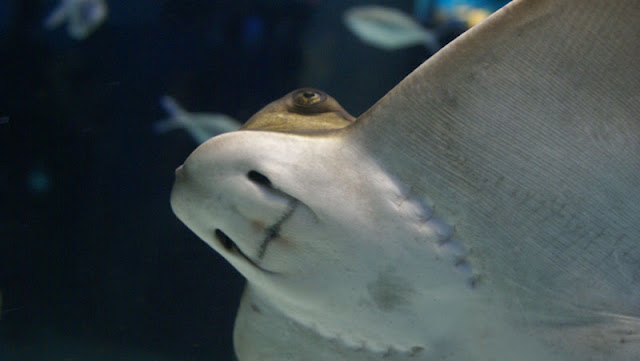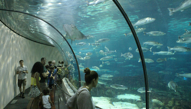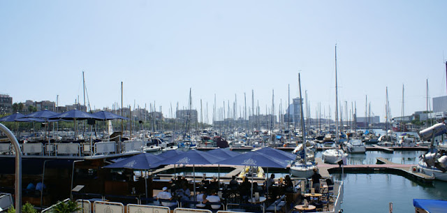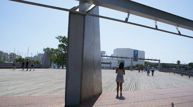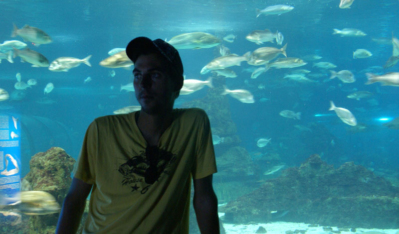 Obudziliśmy się spoceni jak cholera, bo akurat stanęliśmy samochodem po najbardziej nasłonecznionej stronie uliczki Carrer de Italia, także pobudka była szokowa. Zebraliśmy się i pojechaliśmy dalej zwiedzać Barcelonę, co w temperaturze 36 stopni jest naprawdę nie lada wyczynem. Pojechaliśmy najpierw do Muzeum Miro, ale okazało się,że w poniedziałki wszystkie muzea są pozamykane, więc trzeba było zmienić plany. Za kolejny cel obraliśmy, więc Aquarium przy porcie. Ogólnie eksponaty fajne zwłaszcza tunel rybi, ale za prawie 18 euro klapki nam nie spadły.