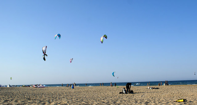 Kolejny kierunek obraliśmy na Allicante z myślą o kąpieli po drodze i o powolnym szukaniu noclegu. Droga w tą stronę wiodła przez bardzo urokliwe tereny. Z jednej strony ogromne przestrzenie, a z drugiej góry, małe wioski, palmy i drzewka cytrusowe. Z kilometra na kilometr robi się coraz ładniej. Po chwili zauważyłam z oddali Kite’y i odrazu zboczyliśmy z trasy na plażę, jednak pora późna, więc Michał nie zdecydował się na pływanko. Przy wąskiej dróżce prowadzącej na kite’ową plażę rosły sobie jakby nigdy nic cytrusowe drzewka, które kusiły owockami.Michał zdecydował się na szaber, jednak limonka okazała się zieloną, niedojrzałą pomarańczą :). No cóż….może dojrzeją po drodze.