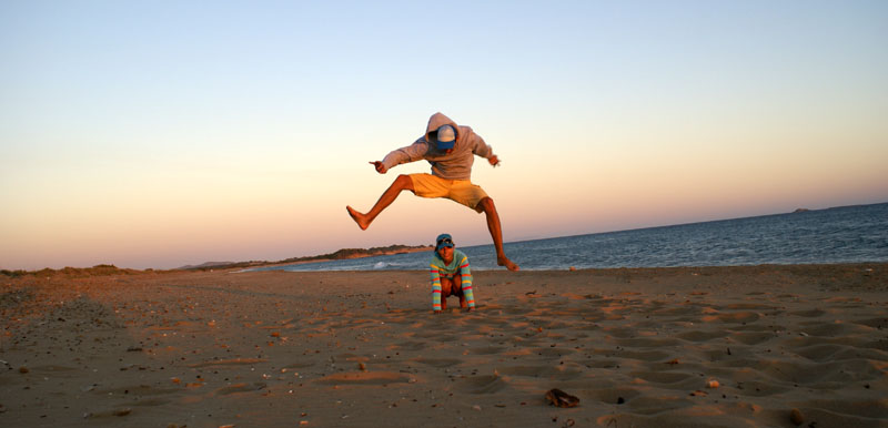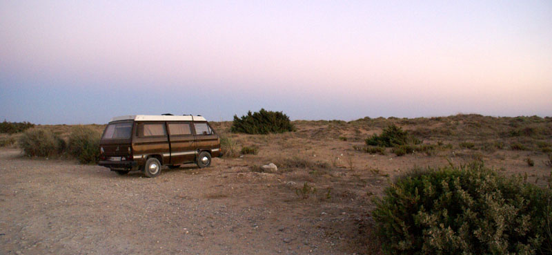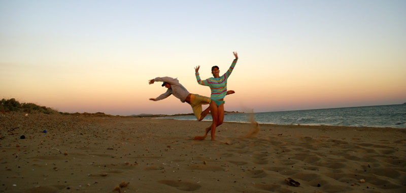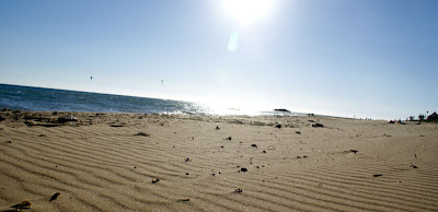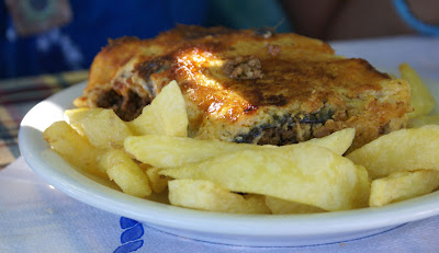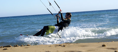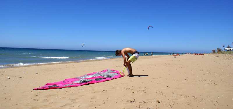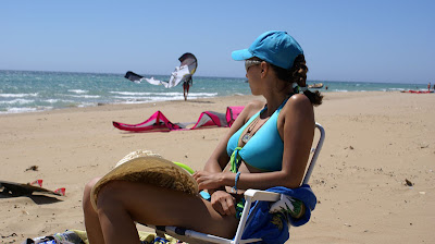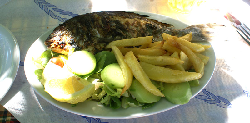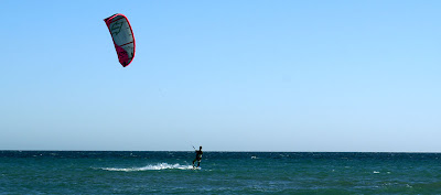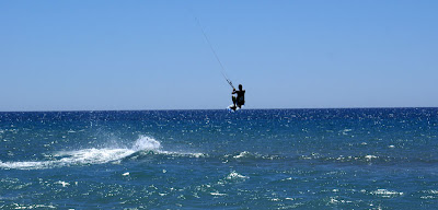 W Sidari Michal poczul wiatr nosem, wiec przemiescilismy sie w strone jednego ze spotow kajtowych na Korfu, ktory miesci se na plazy Chalikounas. Z jednej strony jest jezioro Korission, a z drugiej morze Jonskie. Jak tylko stanelismy przy plazy zanim sie obejzalam Michal juz pompowal latawiec i wskakiwal do wody :). Plaza super – piaszczysta, dluga, a woda plytka. Jednym slowem raj dla kajciarzy. Ludzi niewiele i brzeg niski, gdzieniegdzie tylko wystajace skalki. Wiatr wial 4-5 w skali bouforta. Pozniej wiatr zrobil sie porywisty i okazalo sie ze 12 metrowy latawiec to stanowczo za duzo, wiec zrobilismy sobie przerwe i pojechalismy do pobiskiej tawerny, gdzie ja zjadla mousake ( zapiekany baklazan z miesem, ziemniaczkami, serem i beszamelem ) , Michal polknal rybke z warzywkami i frytami, a na dokladke pozarlismy salatke grecka ze wspaniala grecka oliwa mmmmmmmm pychota. To byl niezly raj dla podniebienia po paru dniach na samych kanapkach. Przy okazji zyskalismy kolejnego przyjaciela w postaci greckiego kota. Najedzeni ustawilismy sobie swoj domek przy plazy i Michal poszedl plywac, a ja oddalam sie lekturze ksiazki. Miejsce jest tak urocze, ze prawdobodobnie zostaniemu tutaj pare dni.