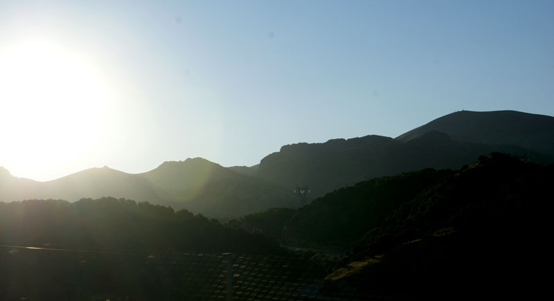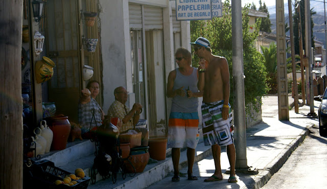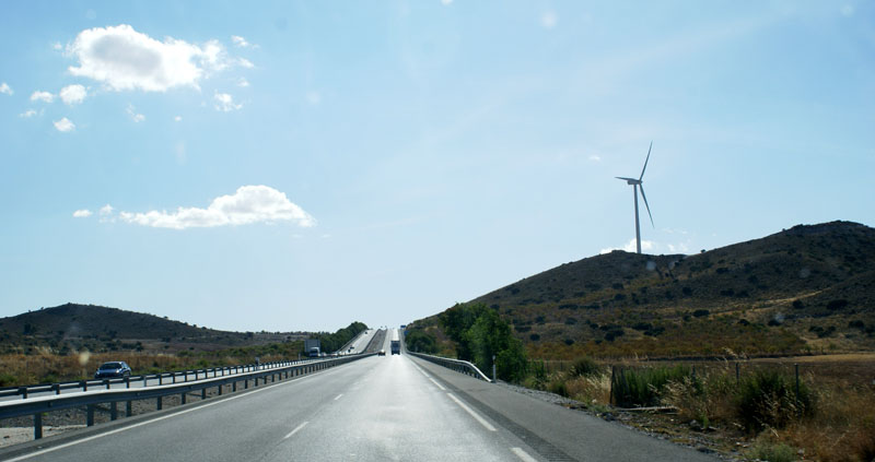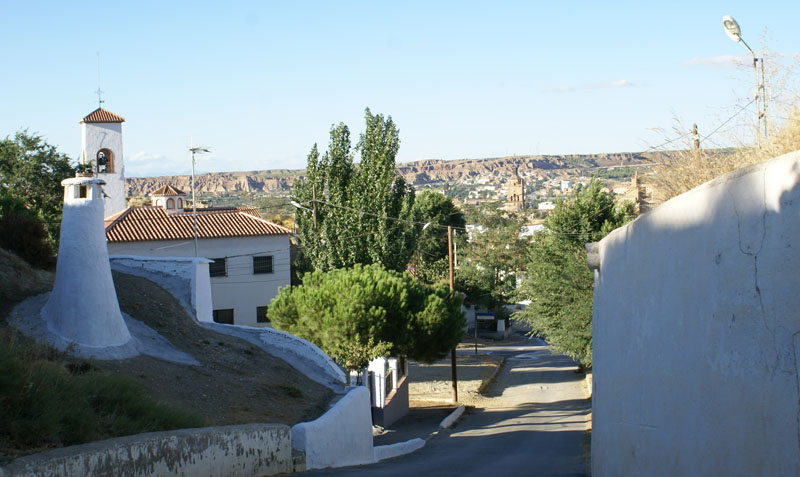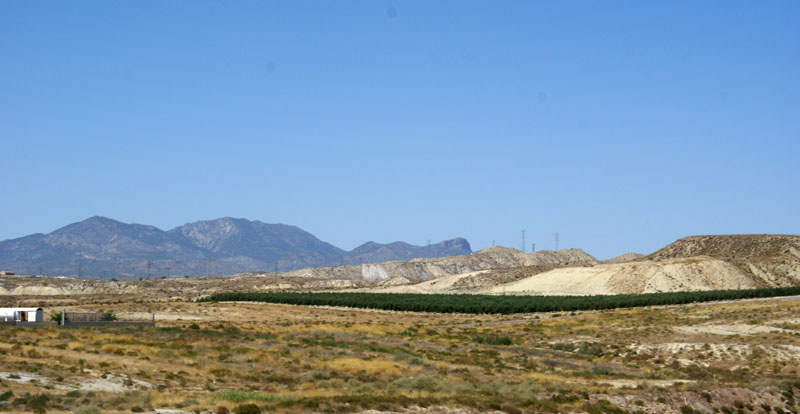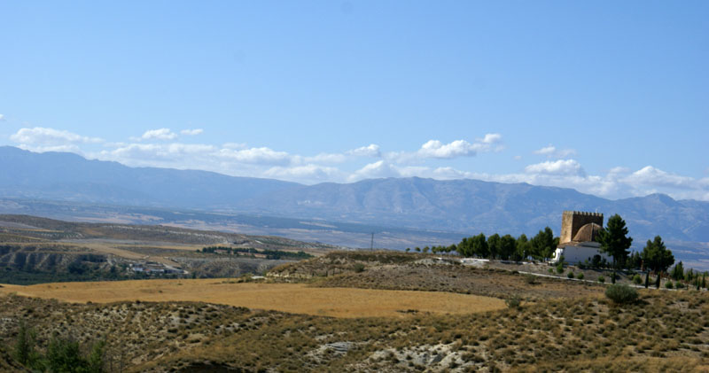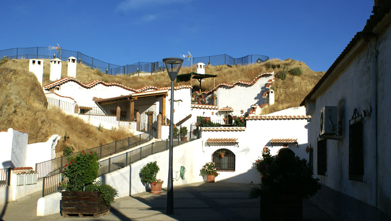 Ustawiliśmy GPSa na Malagę i jazda. Droga w tym kierunku jest wyjątkowo urocza, a prowadzi przez góry Parku Narodowego Sierra Nevada. Mieliśmy nieodparte wrażenie jakbyśmy byli gdzieś w NEVADZIE – sucho i upalnie. Dalej droga prowadziła przez Baze, aż do Guadix przez piękne masywy górskie. Samo Guadix wydało nam się dość ładnym miejscem. Można tam zobaczyć białe domki wbudowane w skały, które wyglądały dość malowniczo, ale klapki z nóg nam nie spadły. W części domków były pracownie ceramiczne, ale większość zamieszkiwały hiszpańskie rodzinki. Podczas przechadzki po uliczkach miasteczka raczylismy się figami i winogronkami prosto z drzewa.