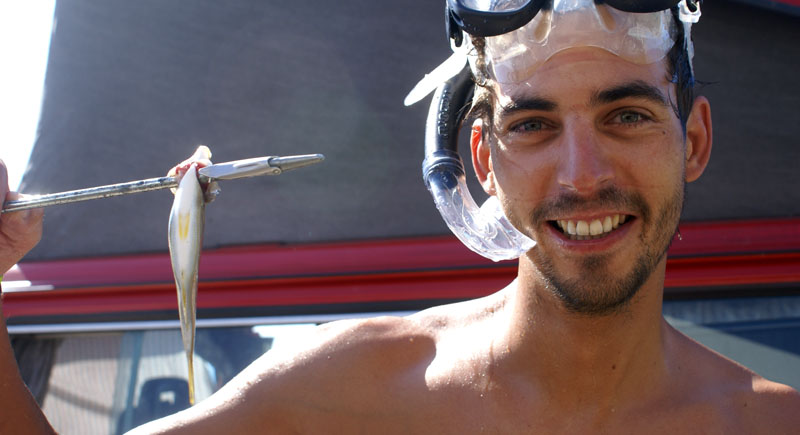 Pobódka jak zwykle słoneczna. Dzień zaczął się od Michała rytuału, czyli połowem z harpunem z morzu. Tym razem wrócił zadowolony, bo udało mu się złowić jedną rybkę i prawie dwie duże :). Co z tego, że mała i co z tego, że ostrze harpuna większe od jej głowy – ważne, że łowy udane. Jedynym minusem okazał się fakt, że rybce ze strachu puściły zwieracze wprost na ręce Michała. Niemiłosierny odór towarzyszył nam więc przez początek dalszej trasy.