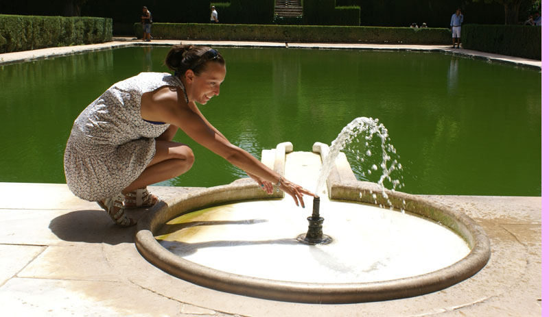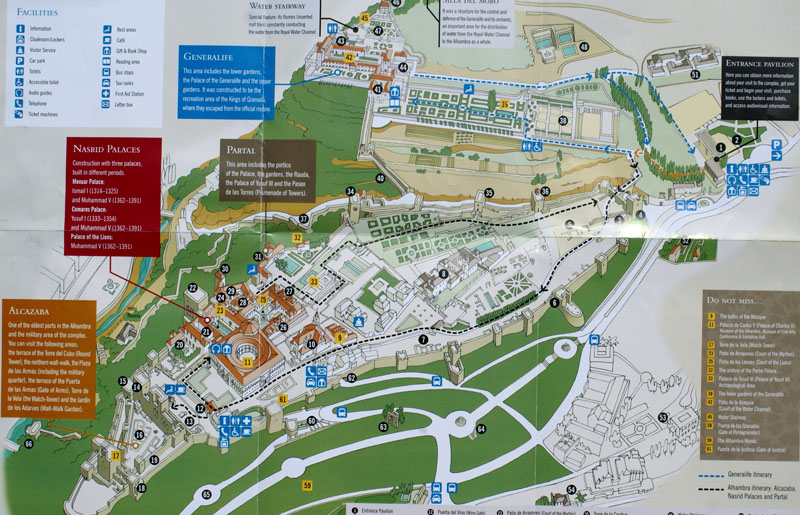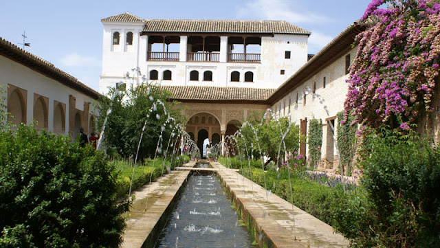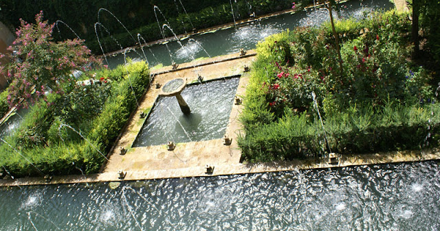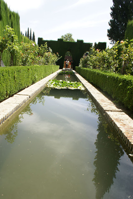 Ogród Generalife jest ogromny i cały zasilany górskim źródłem. W każdym kącie jest strumyczek lub fontanna, w których można zanużyć rączkę albo nóżkę. Przyjemnie, ale trzeba mieć naprawde wygodne buty, żeby bez bólu go przejść. Spacer po całym kompleksie to dobre parę godzin łażenia, kolejek i hektolitry potu.