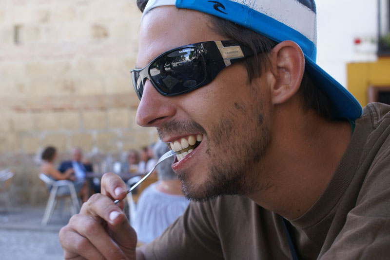 Przespacerowaliśmy się trochę po Rondy uliczkach i spoczęliśmy przy stoliczku, na jednym z placów w pewnej restauracji, żeby uzupełnić pustki w żołądku. Zjedliśmy dwa tapasy i paellę, która jest typowym daniem w tych stronach, a tak naprawdę to poprostu ryż z resztkami ( w tym przypadku owoców morza).