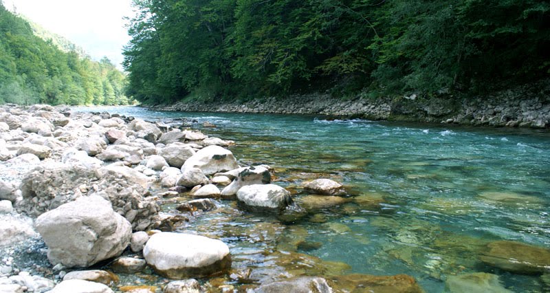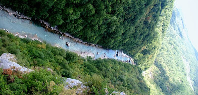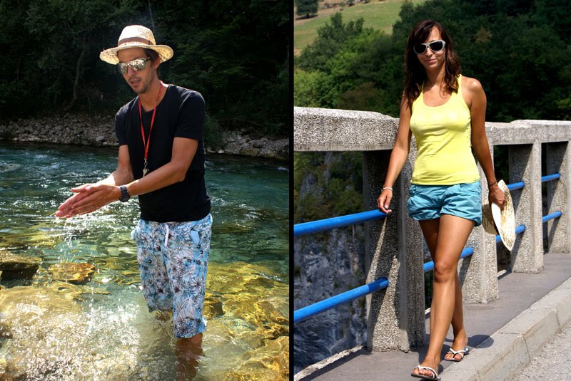 Woda Tary z gory wygladal tak zachecajaco, czysciutko i niebiesko, ze znalezlismy zejscie w dol kanionu i postanowilismy ja zdobyc :). Po paru krokach okazalo sie, ze to stanowczo nie drozka na klapki. Powolutku, pomalutku sie udalo. Michal oczywiscie wskoczyl do niej i po chwili zaczal niepokojaco dyszec :). Okazalo sie, ze jest nieziemsko zimna. No coz to raczej logiczne – w koncu z gor. Pieknie, spokojnie ale trzeba wracac. O ile latwo bylo zejsc tak wejscie przynajmniej mi przyspozylo sporo problemow. Tak sie zdyszalam, ze ledwo moglam oddech zlapac. W szybszym dotarciu na gore pomogl mi waz, ktorego zobaczylam w zaroslach. Nogi same mi zaczely biec.