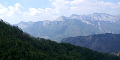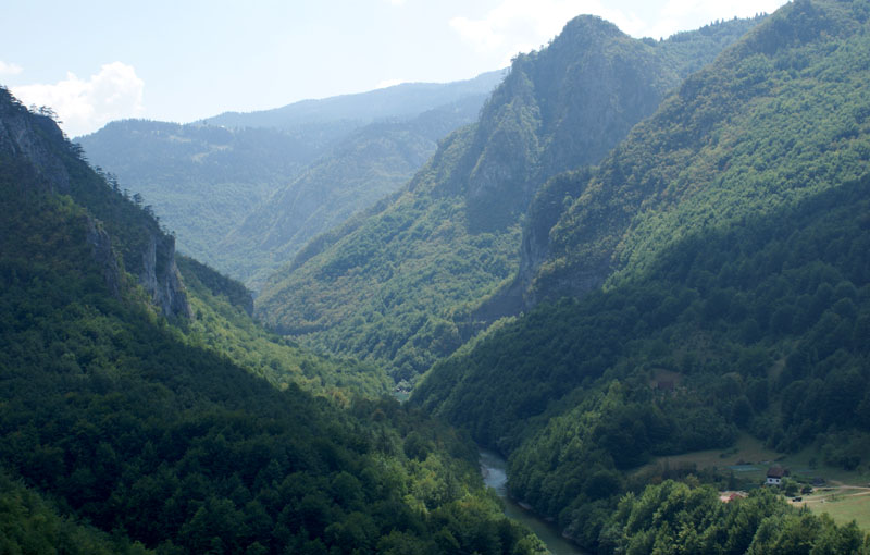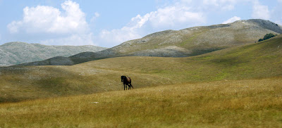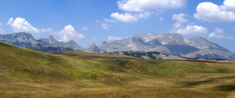 Wstalimy niewyspani, bo dudnil wiatr strasznie, ale czas na nas. Zjechalismy na sam dol i ruszylismy do Niksic, aby dotrzec stamtad do parku narodowego Durmitor. Oznakowanie drog tutaj jest tak fatalne, ze ciezko nam bylo tam trafic. Jak zapytalam o droge to milych dwoch panow tirowcow piec razy mowilo mi, ze mamy jechac w prawo i dopiero po chwili zorientowalam sie po ich gestach ze u nich prawo to znaczy prosto :). Droga w strone Durmitora przepiekna… Na poczatku mocno zalesiona i zielona zamienila sie w lekko gorzysta, pagorkowata, usiana glazami jak Michal stwierdzil: „po ladolodzie” :P. W oddali widac bylo juz wysokie szczyty Durmitoru, a miasteczka nadmorskie zamienily sie w osady gorskie z domkami ze spadzistymi daszkami.