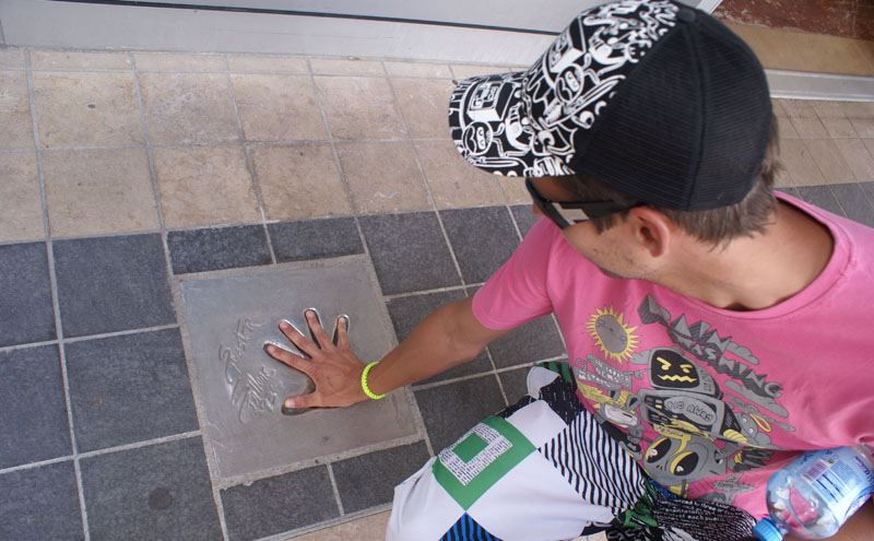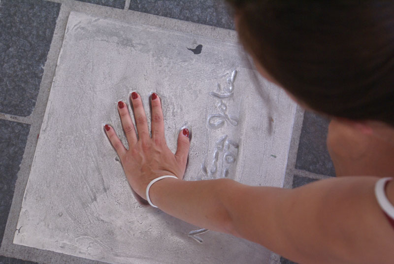 Wokoło budynku ciągnie się aleja gwiazd z odciskami znanych gwiazd z całego świata. Ja i Karo wpasowałyśmy dłon w dłoń Angeliny Jolie i o dziwo pasowała i do mnie i do Karo :). Michał przymieżył się do Sylvestra Stallone, ale miał lekkie luzy :). Parę zdjątek, parę uśmiechów i w drogę.