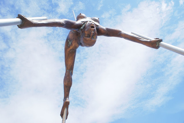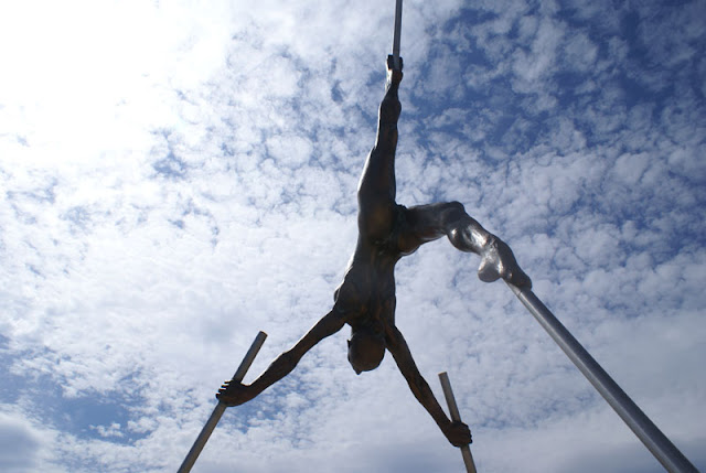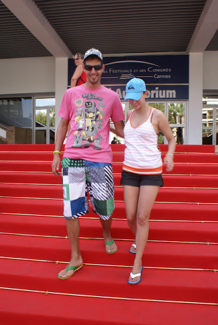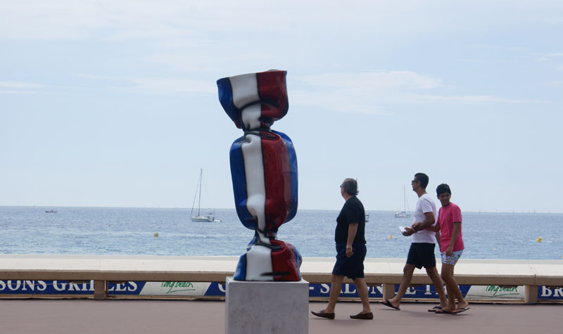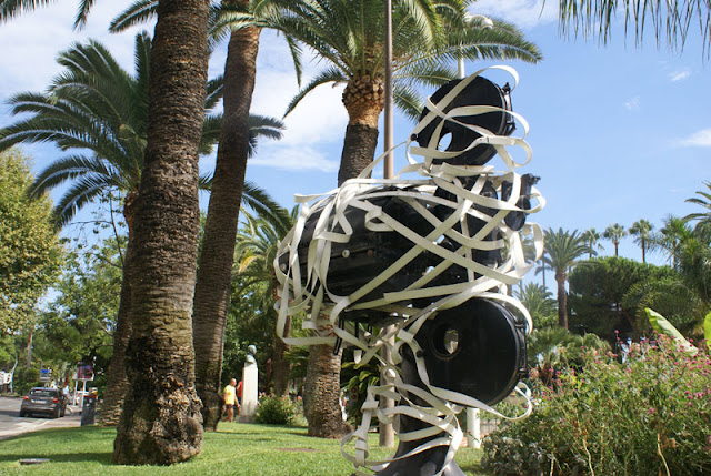 Poranek okazał się ciężki, ale skok do orzeźwiającej wody zmienił wszystko. Chwilę poplażowaliśmy, ale zaraz podjechała policja i kazali nam się ewakuować. Obraliśmy kierunek – CANNES. Jak zwykle problem z parkowaniem. Trzeba było się pokręcić 30 minut, ale dało radę. Malina stanęła lekko zadkiem na pasach za nami. Zwiedzanie zaczęliśmy od Le Croisette, czyli promenady palmowej ciągnącej się wzdłuż wybrzeża. Zmieżając w stronę czerwonego dywanu na małym placyku stoją ładne rzeźby i nie omieszkaliśmy porobić zdjęć. Przy porcie wznosi się pałac, w którym odbywają się najsłynniejsze festiwale filmowe w Cannes. Czerwony dywan leży cały rok, więc trzeba było zrobić sesje zdjęciową ( mimo że ludu pełno jak na bazarze ).