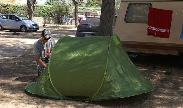 Rano zostawiliśmy samochód u mechanika, jeszcze parę wyjaśnień w miarę językowych możliwości i jazda z Kubą i Karo do sklepu po namiot, zapasy i na camping. Stwierdziliśmy, że nie ma sensu wstrzymywać towarzyszy przed dalszą podróżą, więc odwieźli nas do La Ciotat. Rozłożyliśmy mandżur, pożegnaliśmy się i rozdzieliliśmy.