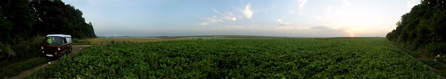 Z Lwowa kierowalismy sie do granicy z Rumunia. Drogi fatalne, prowadza nie wiadomo gdzie i koncza sie nie wiadomo gdzie. Szerokie ulice i takie tez w nich dziury. Srednia predkosc 60 – 80 km na godzine, wiec troche podroz nam sie wydluzyla. W polowie drogi do Cernivci zatrzymalismy sie na jedzenie w jakims ukrainskim rzepaku, szybki Hot Shower From The Sun ( 20 litrowy czarny worek jest niezastapiony – mydlo,pasta do zebow, balsam do ciala – rewelacja ). Zrobilo sie pozno, wiec trzeba bylo znalezc dogodne miejsce do przekimania. Zmeczenie dalo sie we znaki i podjecie decyzji bylo bardzo skomplikowane. W koncu przycupnelismy 40 km przed granica kolo jakiegos warsztatu samochodowego na parkingu. Szybka toaleta, male pifffko i spac.